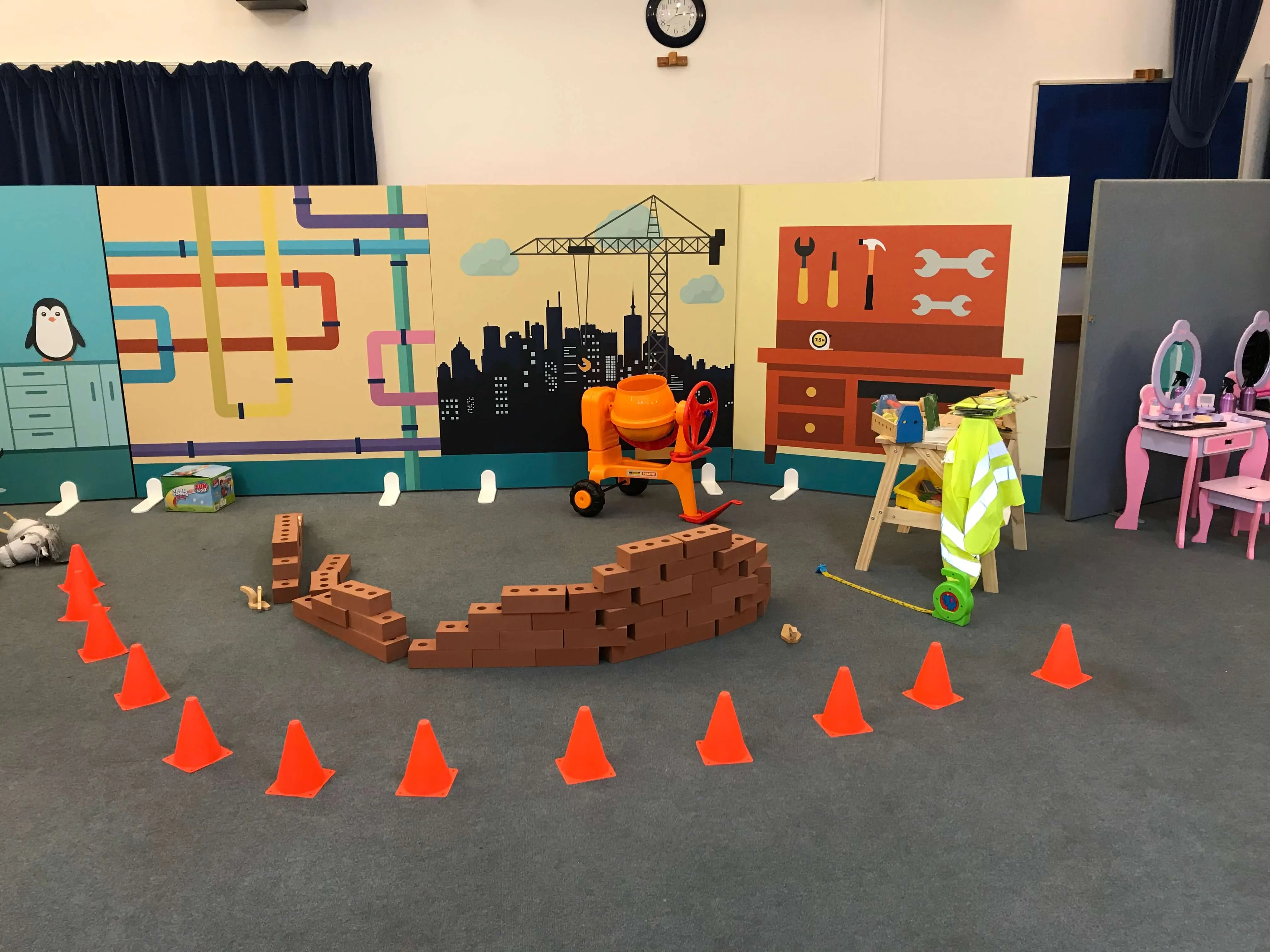 Our themed areas - or as we like to call them “imagination stations” include a Shop, Building site, Beauty salon, Home, Veterinary practice, and Space Station.